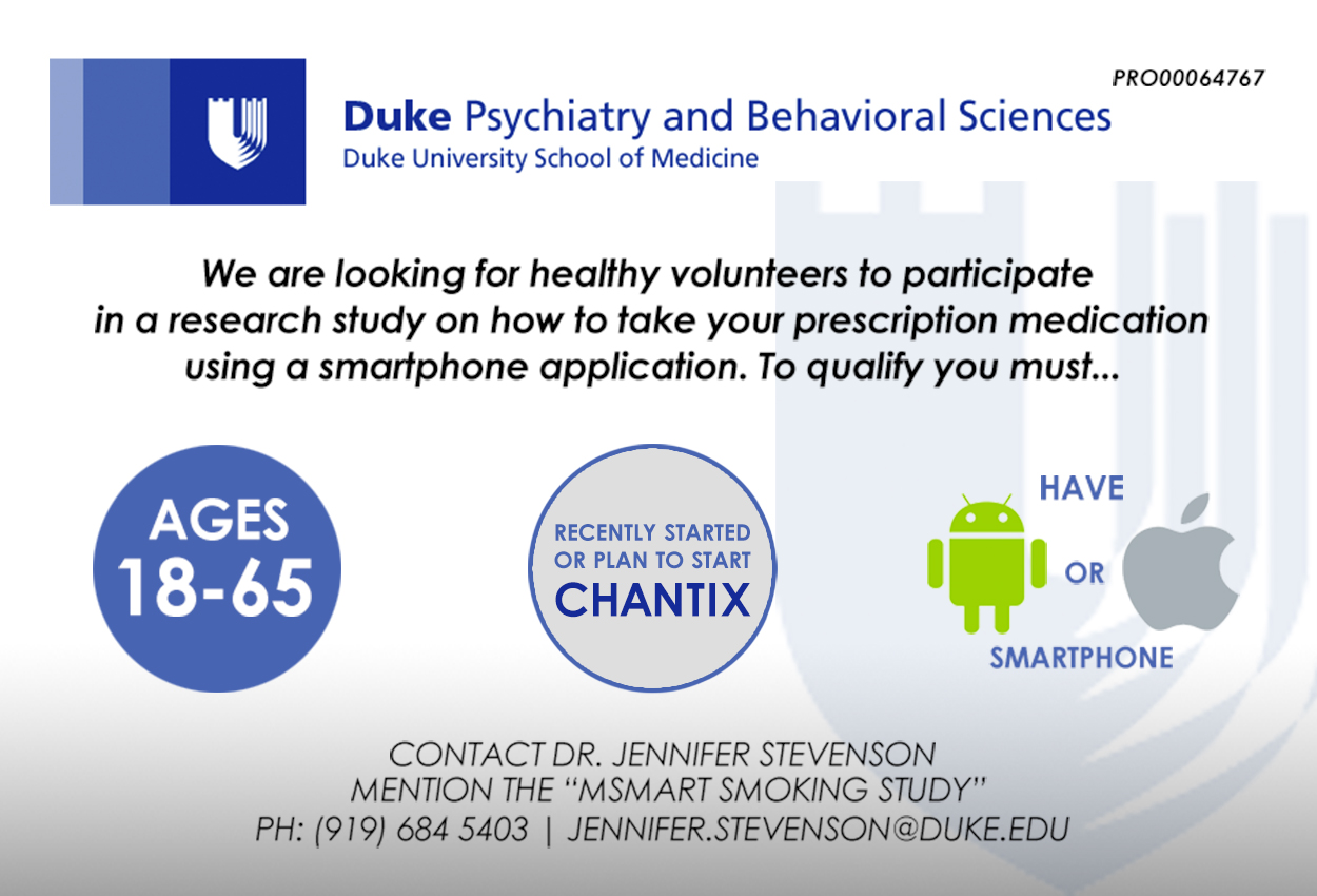 - Will have a 50% chance of also receiving a smartphone application we have developed that might help them even more in adhering to their Chantix prescription.