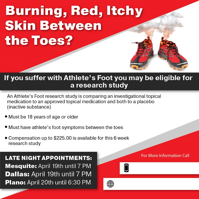 An Athlete's Foot research study is comparing an investigational topical medication to an approved topical medication and both to a placebo (inactive substance)