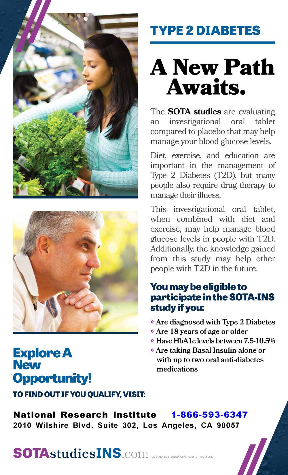 This investigational oral tablet, when combined with diet and exercise, may help manage blood glucose levels in people with Type 2 Diabetes (T2D). Additionally, the knowledge gained from the SOTA studies may help other people with T2D in the future.
