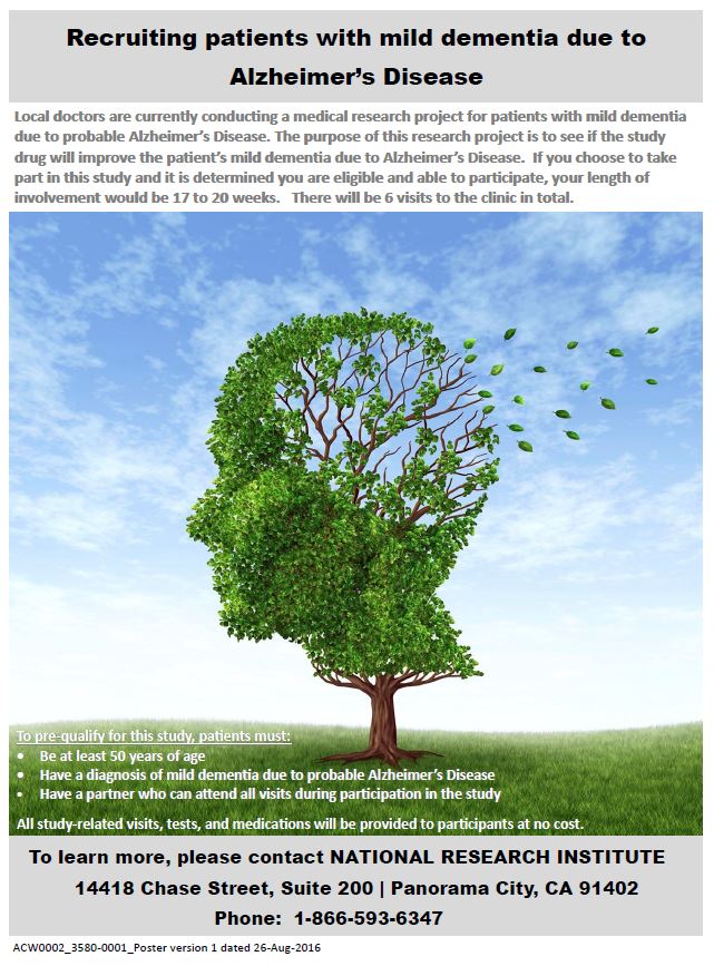Local doctors are currently conducting a medical research project for patients with mild dementia due to probable Alzheimer's disease. The purpose of this research project is to see if the study drug will improve the patient's mild dementia due to Alzheimer's disease.