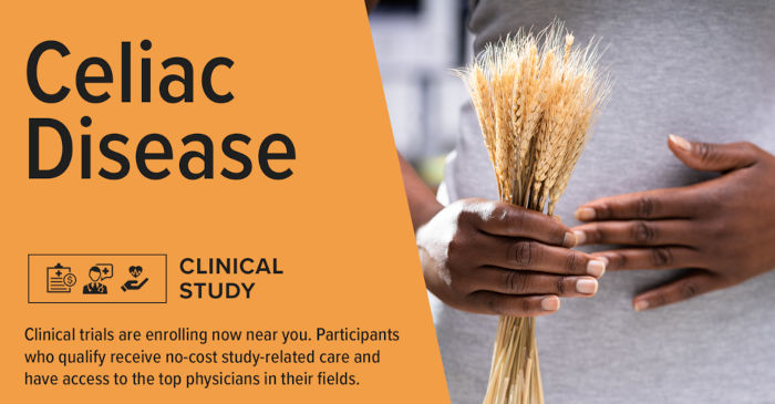 - Study-related care from the top physicians for Celiac Disease at no-cost