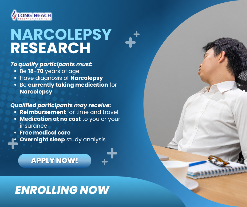 Click image to enlargeWe are looking for patient volunteers to participate in a study to test the efficacy of a new FDA-approved medication for Narcolepsy. Medication comes at no cost to you or your insurance. You will be compensated for the time and travel spent on our study. ALSO if you refer a friend that qualifies, you will earn a BONUS!